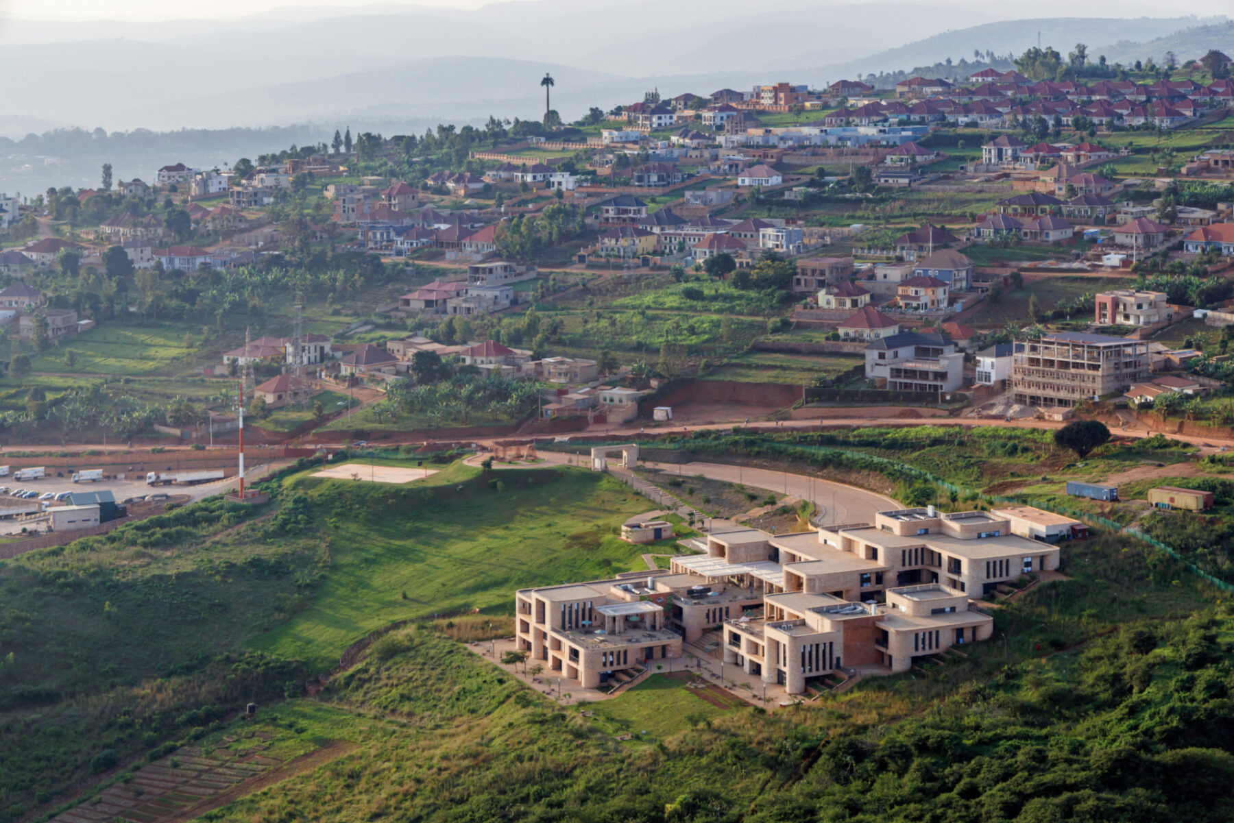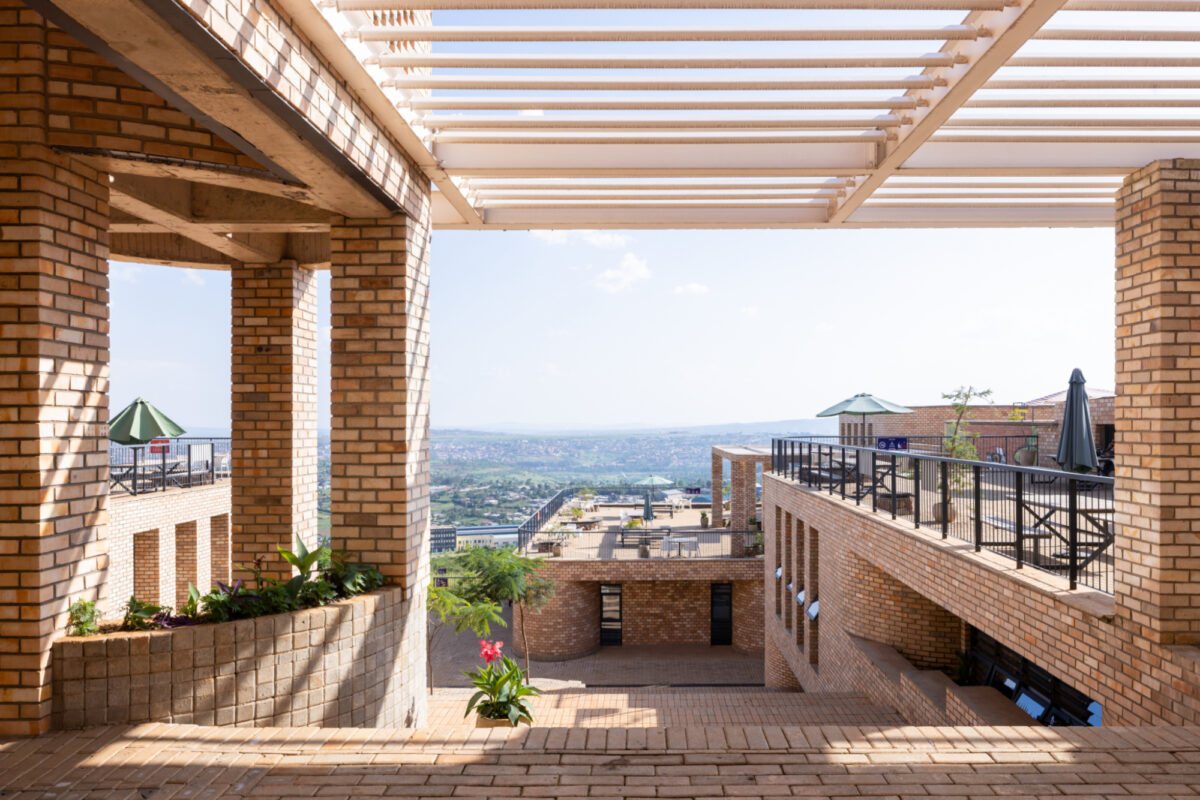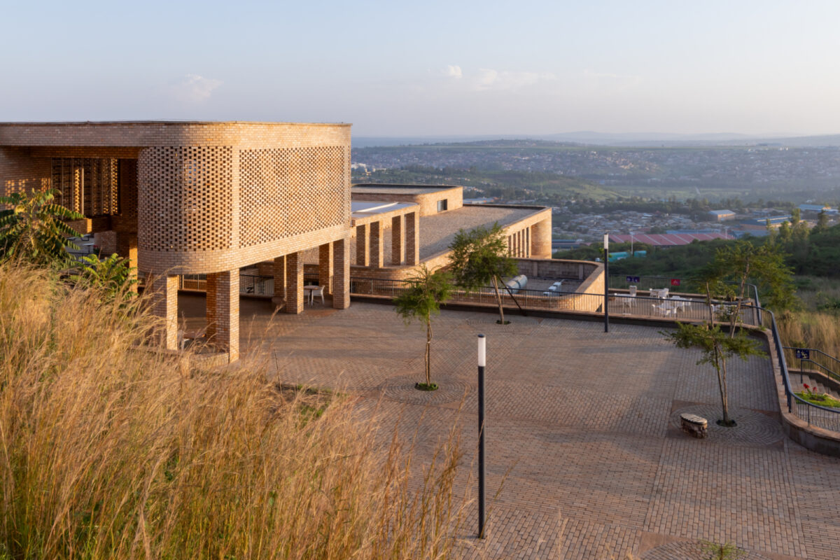 The modular brick system minimizes waste, simplifies construction, and strengthens local craftsmanship, rooting the project in the culture and resources of Rwanda. Set within the country's thousand hills, the buildings step with the land, opening to light, air, and views of the city.