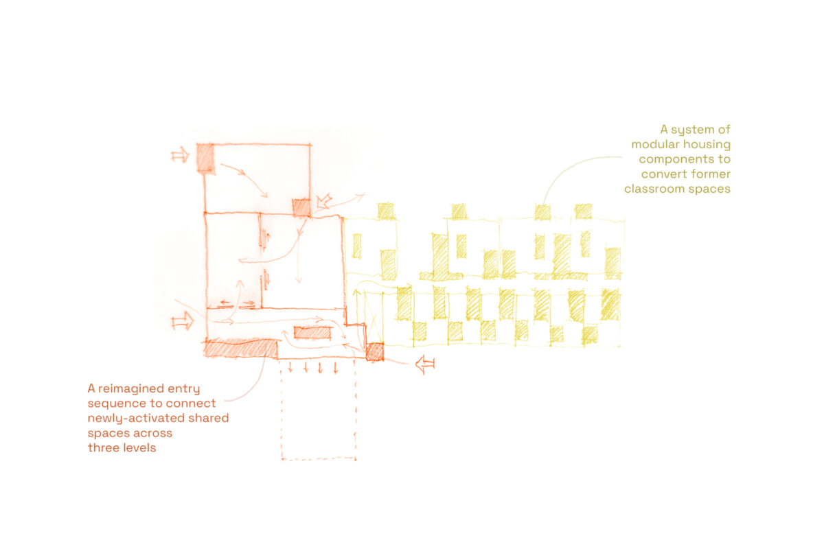 MASS MoCA, one of the largest contemporary art museums in the United States, has partnered with AMMA to reimagine the former Sullivan Elementary School, an abandoned 52,000-square-foot midcentury building of precast concrete with panoramic views of the Hoosic River Valley, as a vibrant community of apartments and studios for artists and creative professionals. The project will include rehearsal, studio, and gathering spaces, along with more than 40 affordable housing units that prioritize long-term flexibility, creating pathways to ownership and reinvestment in a neighborhood primed for reimagination.