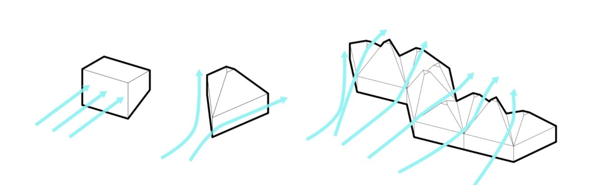 The triangular classroom module borrows from the Barbadian chattel house, using passive ventilation, steep roofs, prefabrication and natural materials to connect students to climate and place while minimizing energy use and embodied carbon. The pyramid roof form resists strong winds efficiently, allowing the building to be a safe haven for the community in the event of 100-year storms and extreme weather events.